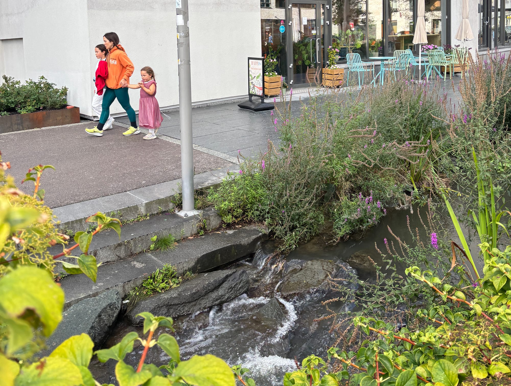 I Oslo tog man tillbaka vattendraget som tidigare varit kulverterat, från Tegelverksdammen och nedströms mot Ensjø station. Det forsar fram på gårdar och längs gator. Det är lätt att se hur barnen förstår var de är genom att se vattnets riktning. Bilvägar går i två riktningar, väderstreck kan vara abstrakta. Det råder aldrig något tvivel om vart vattnet är på väg.