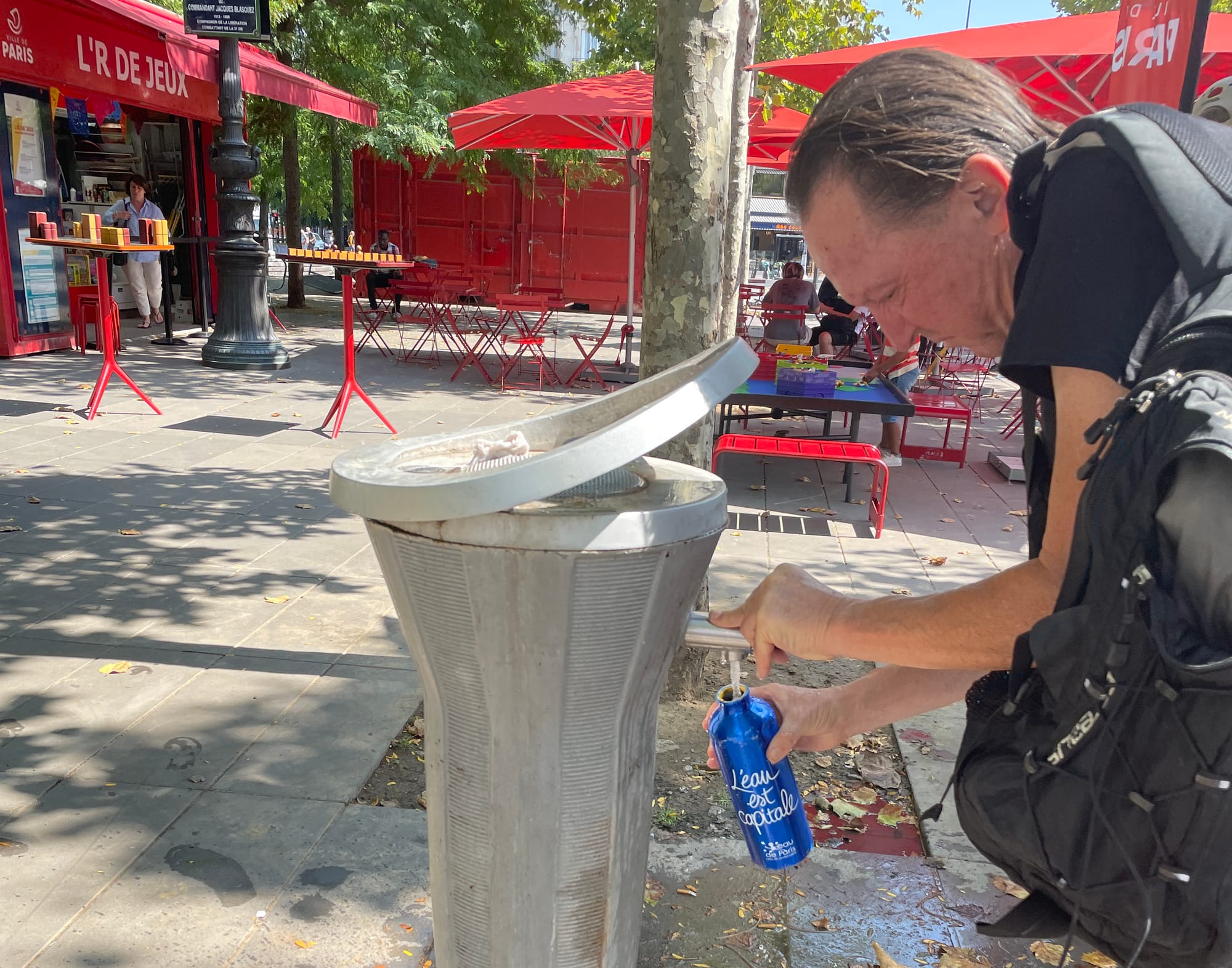 Flaskan som mannen fyllde är en del av staden Paris initiativ ”Eau de Paris”, Paris vatten, med bland annat 1200 dricksvattenfontäner. Det började med värmeböljan 2019. Det väckte i sin tur minnet av värmeböljan 2003 när platserna på stadens bårhus tog slut eftersom så många hotades till livet av värmen. Det skulle inte hända igen, vattnet måste göras tillgängligt, överallt, för alla.