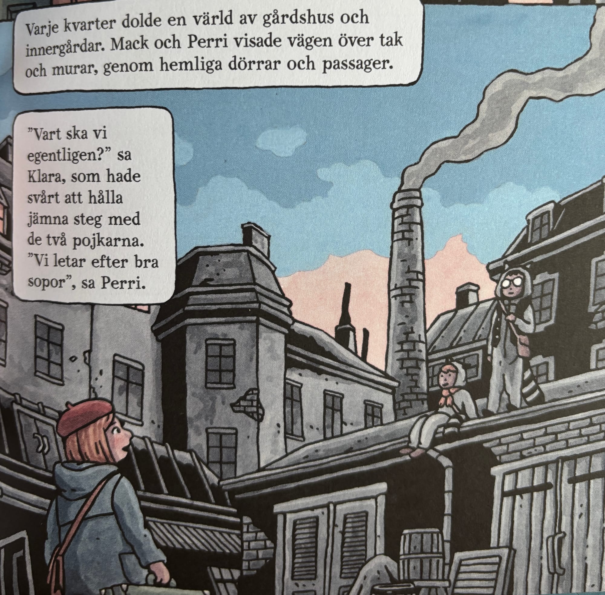 En sida av boken är den som handlar om att en gammal skev stad är hotad av de som vill göra allt fyrkantigt. En annan, som kanske på sätt och vis berör mig mer är hur de här barnen ger sig ut i staden, staden som ett äventyr.