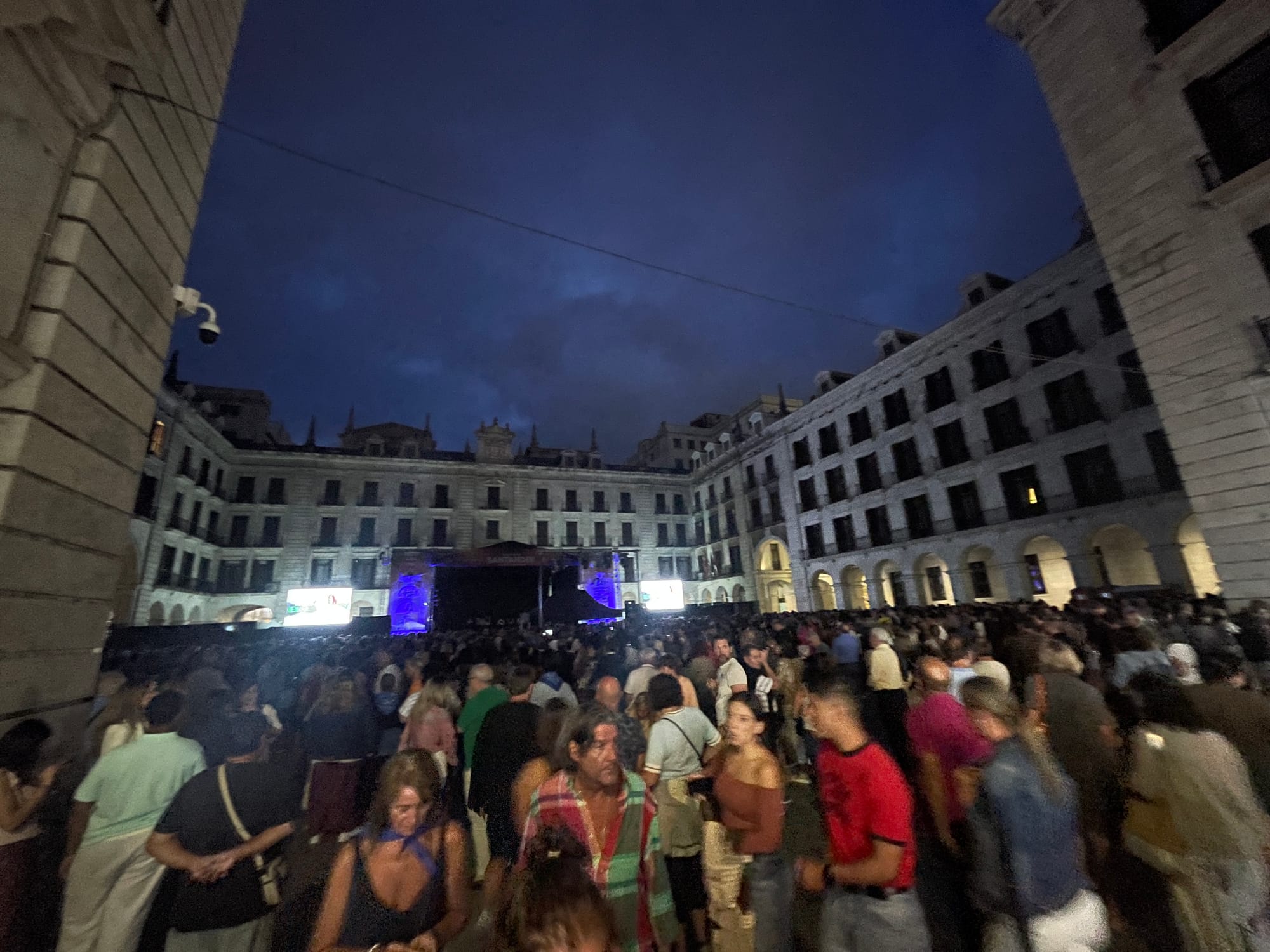 Så drog musiken i gång på Porticada-torget – och en för oss främmande spansk popstjärna spelade och alla sjöng med – i varje ord. De gamla fasaderna kunde bara se på och vi kunde bara svepas med.